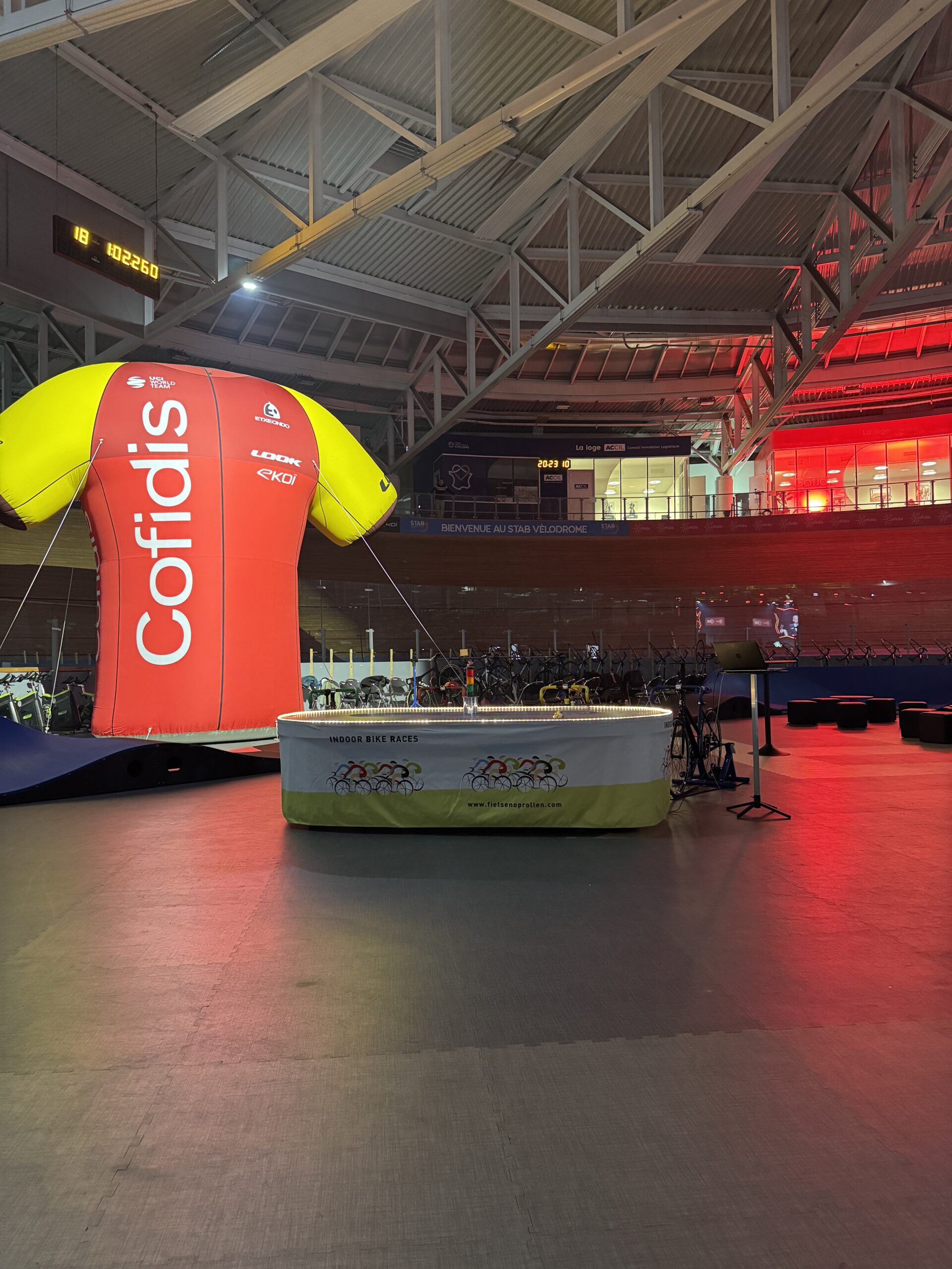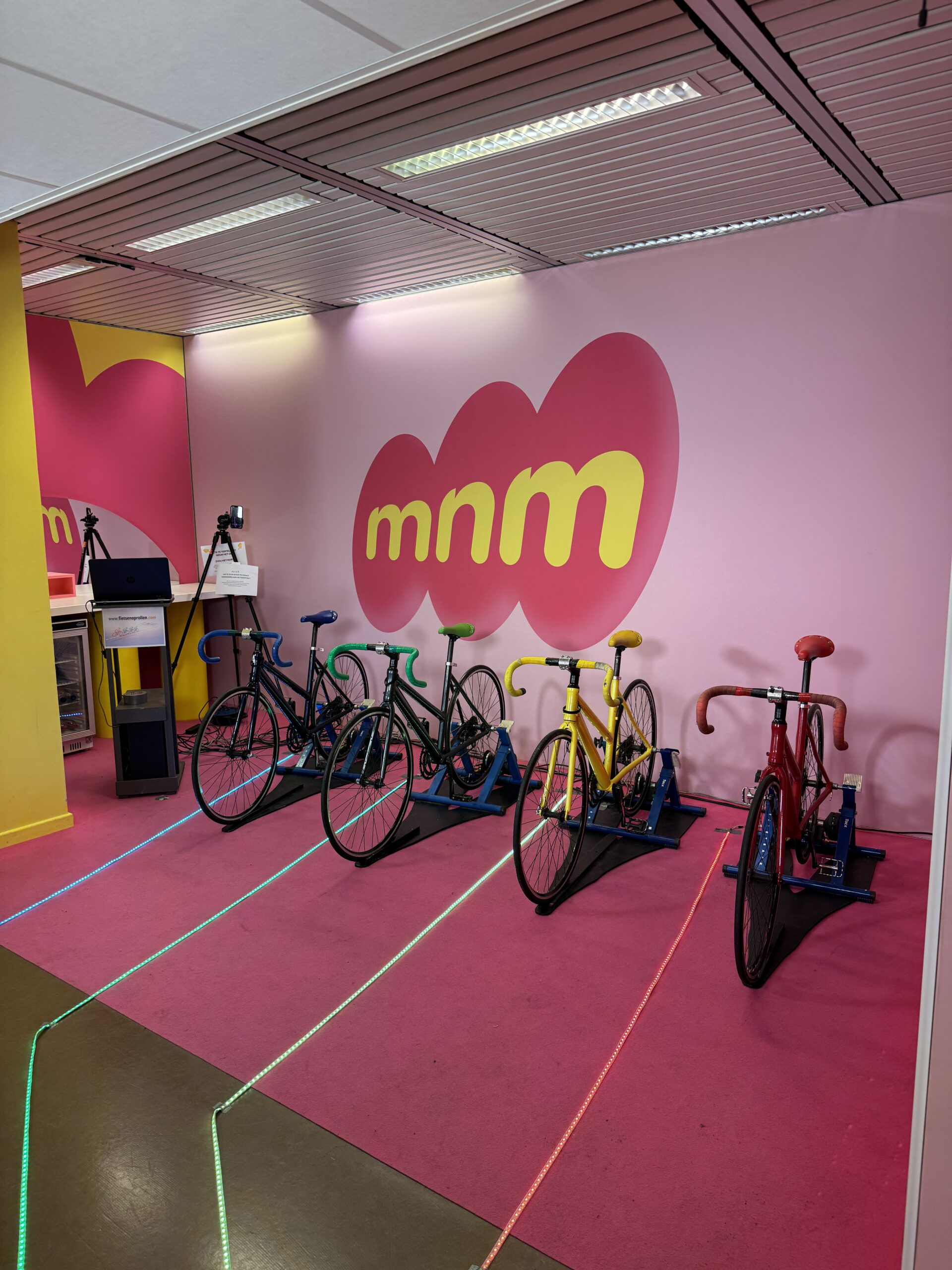 Onze unieke fietspiste brengt elke ruimte tot leven. Stap op de pedalen, voel de spanning stijgen en zie jouw kleur over de baan schieten. Wie houdt het tempo het langst vol en haalt als eerste de finish?